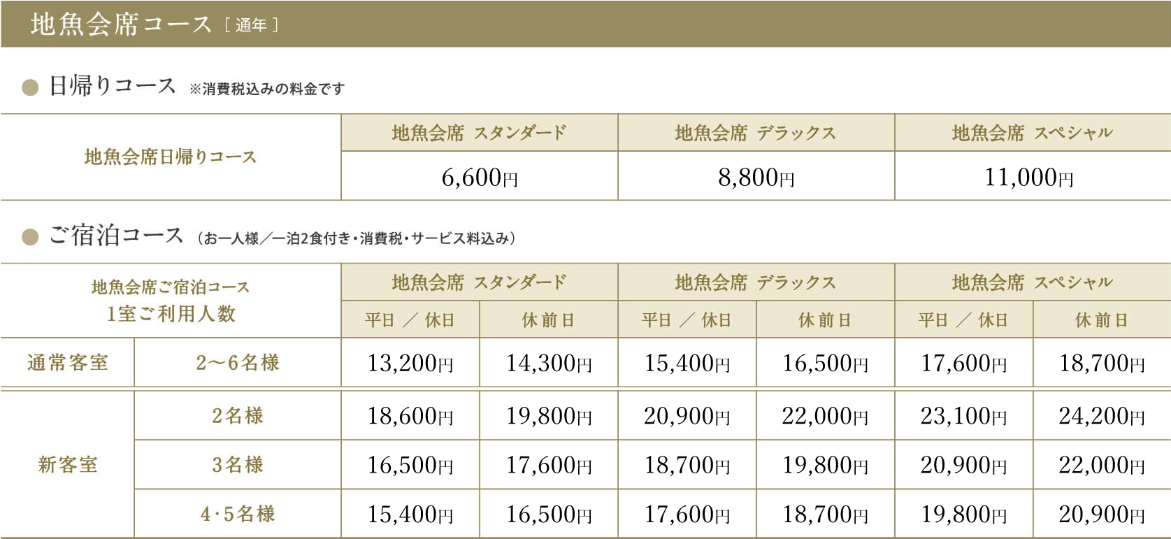 ※GW・お盆期間・年末年始は料金が異なります。詳しくは当館までお問い合わせください